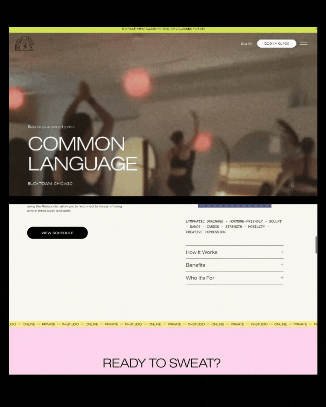 Common Language is a Chicago-based wellness studio that facilitates whole-body wellness from the inside-out through music and movement.Common Language connected with us to evolve their existing branding, elevate their creative direction, and revamp their website. We were also tasked with creating a campaign to launch a studio collab and training program which included product design for their physical manual.